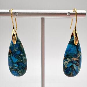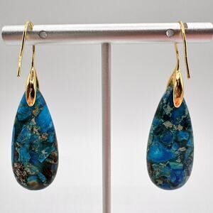 Blue Composite Stone Teardrop Earrings Gold Tone Ear Wire Vivid Modern