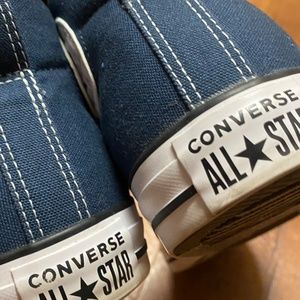 Navy Blue unworn converse, were too big for my mom lol. Us 1o in mens and 12 in women. Selling for 60 willing to negotiate.