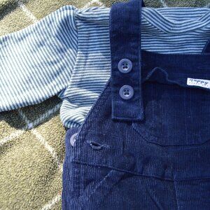 Blue Corduroy Overalls and Stripe Shirt set 3M