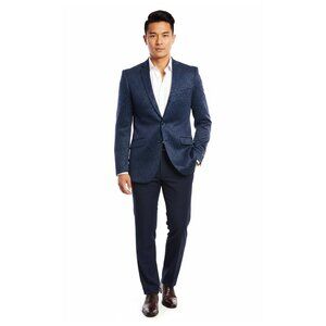 Introducing the Tazio Blue Scales Pattern Jacket - a blend of modern style and classic elegance. This slim-fit, single-breasted jacket features a captivating blue hue with a unique scales pattern, making it a versatile choice for various occasions.