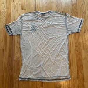 Casual white tee with gray accents. Features a unique graphic design. Ideal for everyday wear.