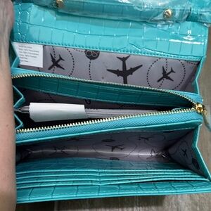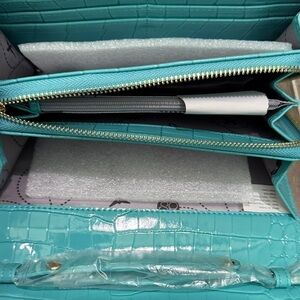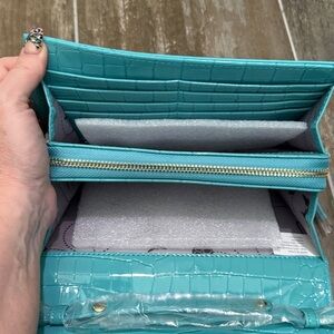 Samantha Brown To-Go Faux Croco Wallet Crossbody The stylishly streamlined silhouette of this envelope wallet allows you the carrying option to hold it as a clutch or sling it over your shoulder. It's perfect for traveling and running errands.