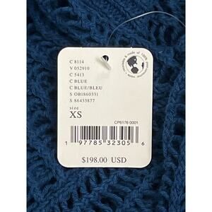 Blue Crochet Open Knit Cardigan Women’s XS 100% Cotton Cover Up NWT $198