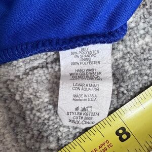 Material: Body is 96% polyester and 4% spandex. Lining is 100% polyester.