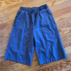 Blue Cropped Wide Leg Culottes Pants Drawstring Waist Casual Comfy