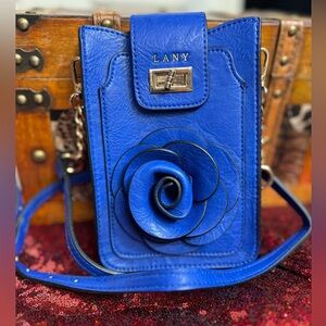 Elevate your style with the Blue Crossbody Bag. Featuring a striking rose detail. Clear backing for holding your phone while making it easy to use.