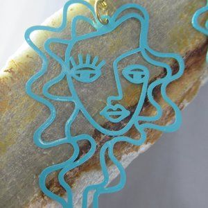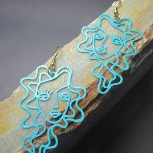 Blue Crowning Glory Dreamer Earrings, Abstract Woman Face, Merida