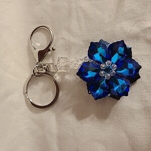 Elegant blue crystal flower key holder with a sparkling design. Perfect for adding a touch of luxury to your accessories.