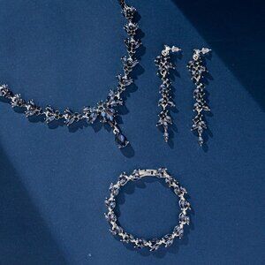 Features: Gorgeous blue crystal rhinestone set including a statement necklace, elegant earrings, and a matching bracelet. The silver-plated alloy adds a sleek, shiny finish that’s eye-catching and versatile—great for weddings, proms, or any dressed-up event.