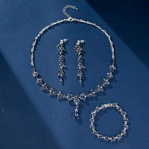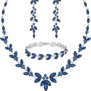 Blue Crystal Jewelry Set for Women Bride Bridesmaid Wedding Party Prom Gift