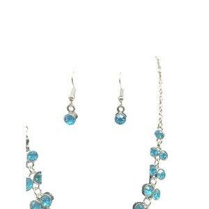 Blue Crystal Necklace and Earring Set for Women Silver Tone Chain