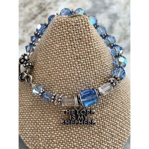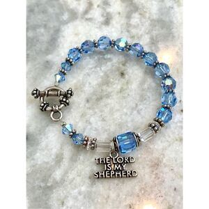 Vintage Handmade Swarovski Aurora Borealis Blue Crystals with Lord is my Shepherd Charm and Ornate Toggle Bracelet #faith #handmade #crystal bracelet #mothers day