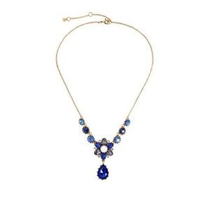 Blue Crystal Pearl Floral Vintage Gold Pendant Statement Necklace