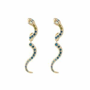 Blue Crystal Snake Vintage Gold Stud Drop Statement Earrings