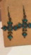 Blue Crystals Copper Brown Gothic Cross Earrings Southwestern Style French hooks