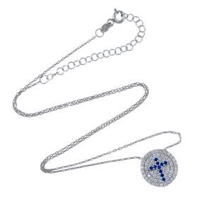 Blue Cubic Zirconia Cross Necklace | Vintage Sterling Silver 925 16”-18”