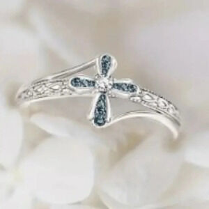 Exquisite Blue Cubic Zirconia Cross Ring - Fashionable Jewelry with Sparkling Gemstone