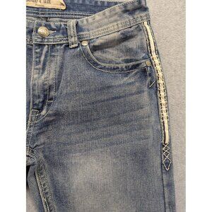 Blue Cult Jeans Mens 32x32 Blue Distressed Straight Leg Embroidered Denim Pants
