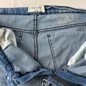 Blue Cult denim jeans, size 38, featuring a light wash with natural fading, and distressed details at the knees. Straight leg cut.