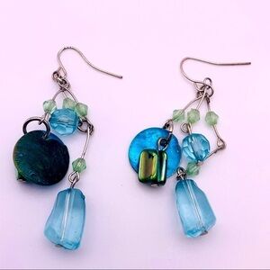 Blue Dangle Beaded Cluster Earrings