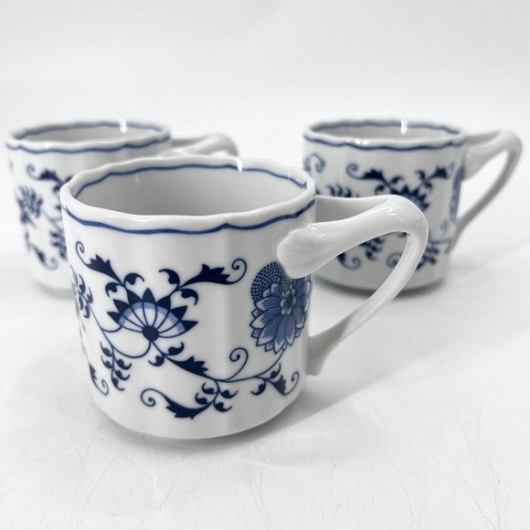 Blue Danube Porcelain Blue Onion Pattern Tea Coffee Mugs Cups Japan Set of 3