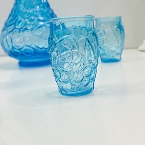 Blue Decanter Glass Pattern #473, Niagra, AKA Grape, Ice Blue/Ocean Blue, w/Stopper and five (5) small matching cups.