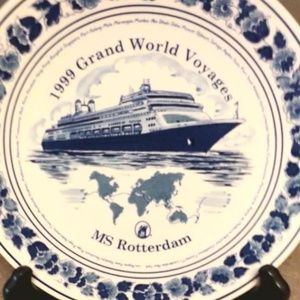 the M.S. Rotterdam cruise liner ship. It can be hung on the wall by a wire on the back of the plate. It is in good condition and