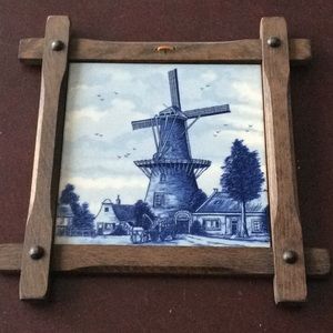 Blue Delft Windmill on tile framed