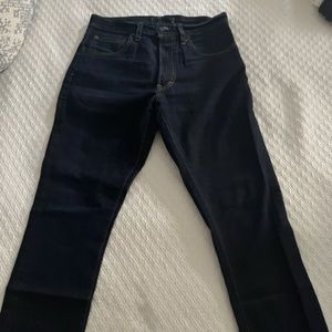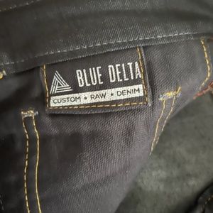 Blue Delta Jeans is a custom pant maker based in the USA. Every pant is made one-of-one using your unique measurements, sewn by hand in Tupelo, Mississippi. These jeans are made with stretch. The tag on the inside back was cut out.