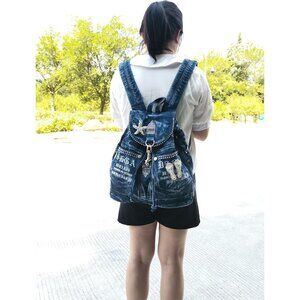 Features: Crafted from durable denim with a touch of glamour thanks to glitter and sequin embellishments, this square-shaped backpack offers a stylish way to carry your essentials. It includes seven pockets, a roomy 16-liter capacity, and adjustable straps for a comfortable fit. Perfect for daily outings, college, or weekend adventures.