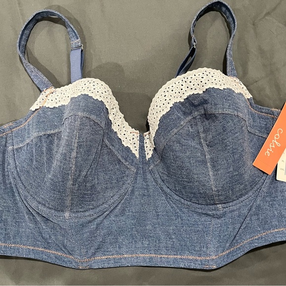 #106 Chic denim bra with elegant lace detailing. Ideal for stylish comfort.
