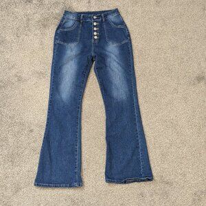 Blue Denim High Rise Button-Fly Flare Leg Jeans; Girl's Size M