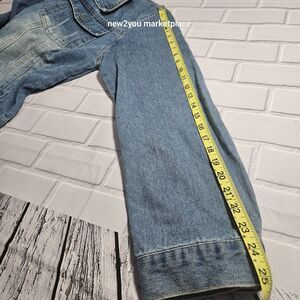 Blue Denim Jacket With Grey detachable Hood with pockets long sleeve med denim