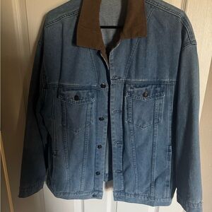 Stylish blue denim jacket featuring a corduroy collar. Perfect for casual wear. Never worn!