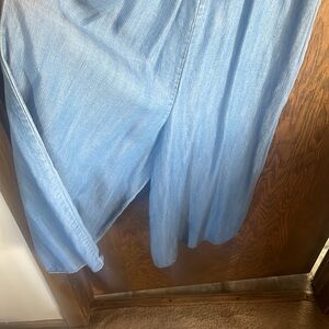 Stylish blue denim top jumpsuit with cinched waist and pockets