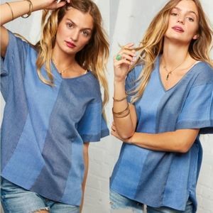 The mix of denim-inspired hues creates a modern color-block design that adds just the right amount of edge to your everyday outfits. Pair it with your favorite jeans for a laid-back denim-on-denim vibe, or style it with leggings and boots for a cozy yet polished weekend look.