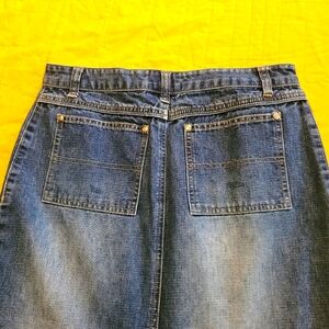 Stylish blue denim skirt with front pockets. Perfect for casual wear.