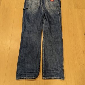 Stylish blue denim overalls with adjustable straps and front pockets. Perfect for casual wear.