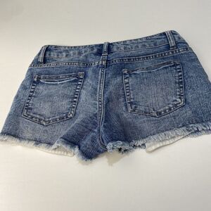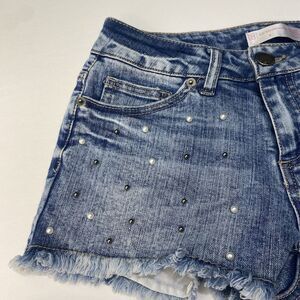Blue Denim Pearl Accent Cut Off Shorts Raw Hem Boho Size 9 Women's Summer Summer
