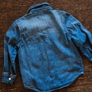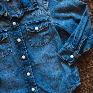 Blue Denim Pearl Snaps Button Up Shirt: 3T