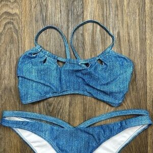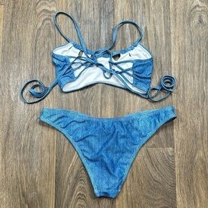Blue Denim Print Bikini Set