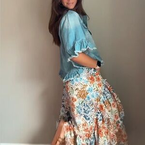 • Trends come & go, but denim is forever! This darling denim jacket has flirty flounced sleeves, a collared neckline, a relaxed button-down bodice with front accent pockets & an ultra feminine ruffled hem. No matter how you style it, the "Ruffle Denim Jacket" is sure steal the show wherever you!