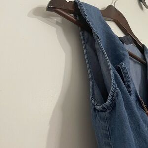 Chic and stylish blue denim top with ruffle details. Perfect for casual outings.