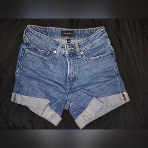 Stylish blue denim shorts with rolled cuffs. Perfect for casual wear.
