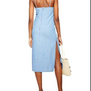 Blue Denim Topshop Tie Front Midi Dress with Side Slit
