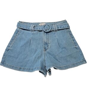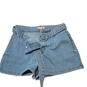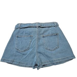 Stylish blue denim shorts perfect for casual outings. Features a comfortable fit and a trendy belt detail.