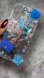Stylish blue iPhone 16 phone case featuring a blue designer-inspired charms and various decorative elements. Perfect for adding a touch of luxury to your device. Handmade and brand new.