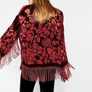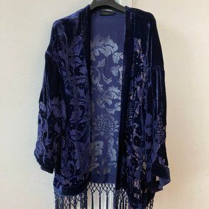Blue Devore Velvet Kimono;