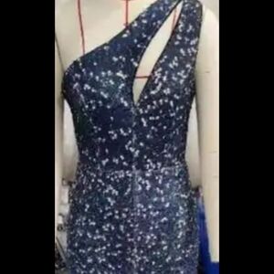 Blue, Diagonal Collar, Sleeveless, Gradient, Mermaid Sequined Gown