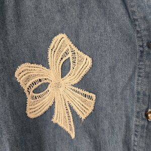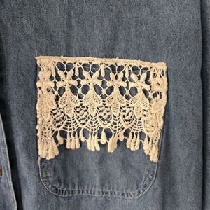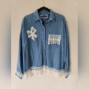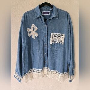 Blue Diamond Denim Shirt Women Sz L Chambray Lace Embroidery 90s Classic…